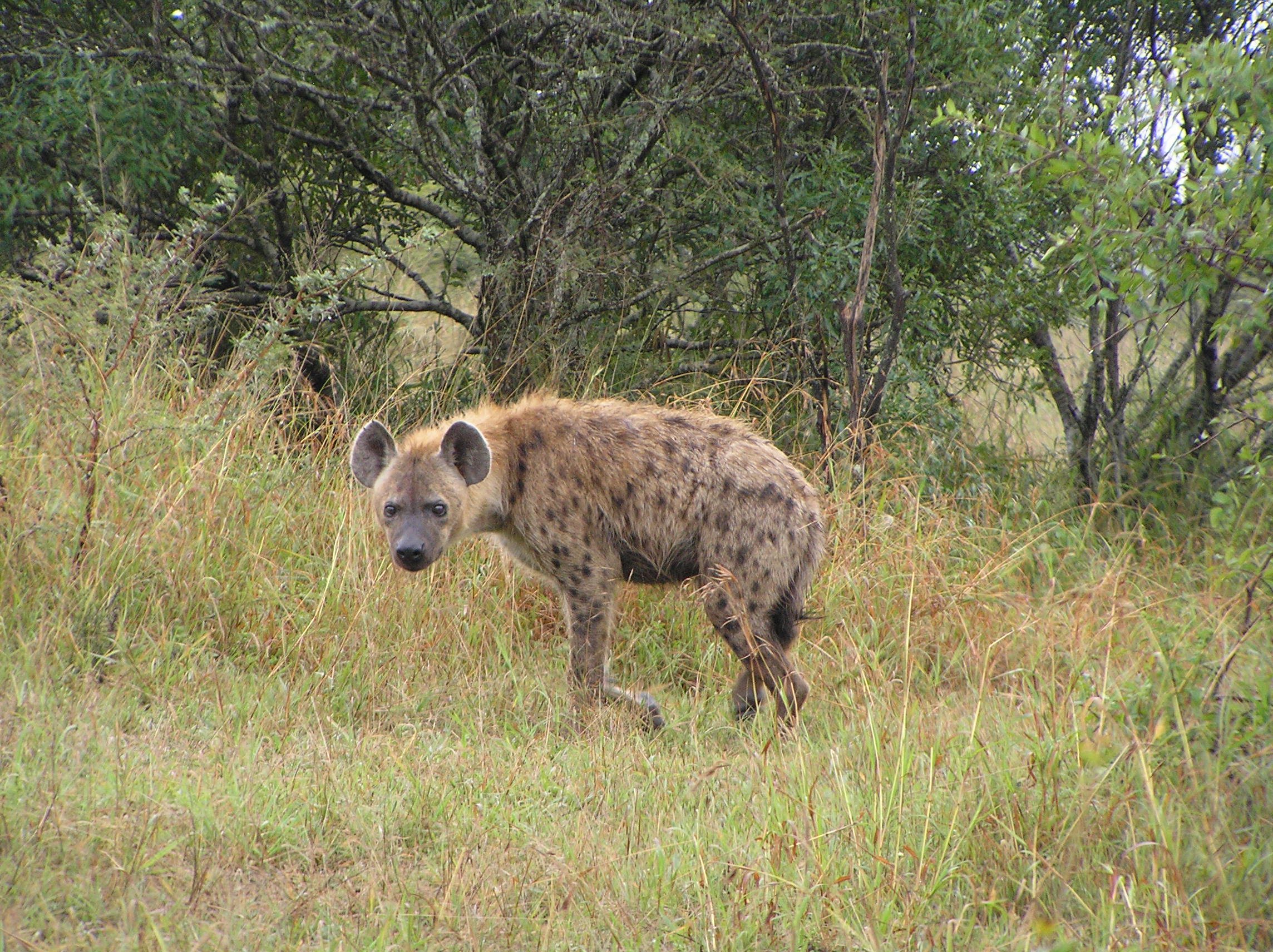 We came to a grinding halt, there on the left of us were a pack of African Wild dogs frolicking, playing a tug of war with the front leg bone of a small antelope. We were mesmerised. Then to our astonishment a hyena came skulking across the road intent on stealing the dogs' bone!