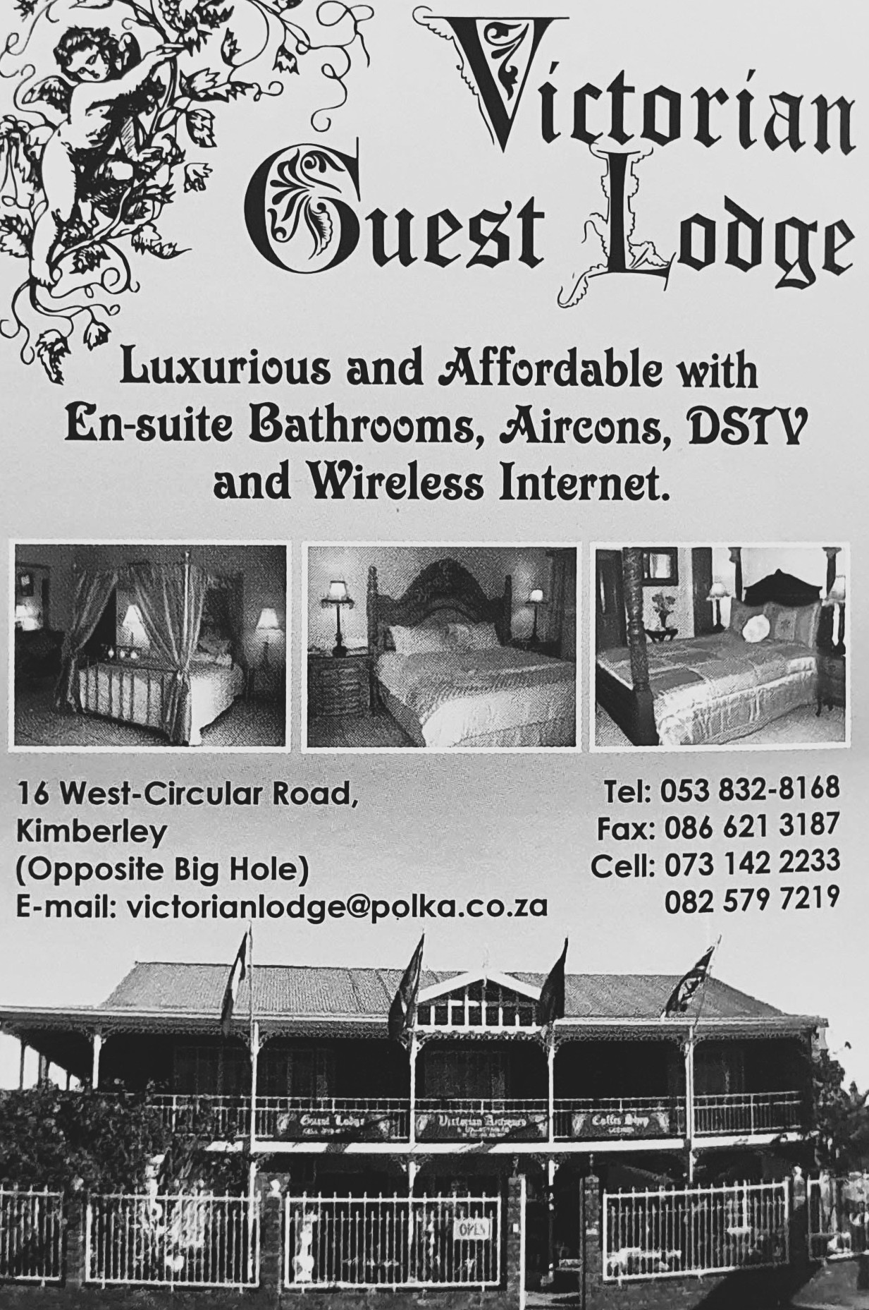 Kimberley's Victorian Guest Lodge is close enough to the Big Hole to offer a view of it, and the neighbouring house is an original miner's house (built entirely of corrigated iron); it's also not too far from the legendary Halfway House Pub on Du Toitspan Road (the first road in the world to be lit up by electricity after Philadelphia's roads). a pub steeped in history.