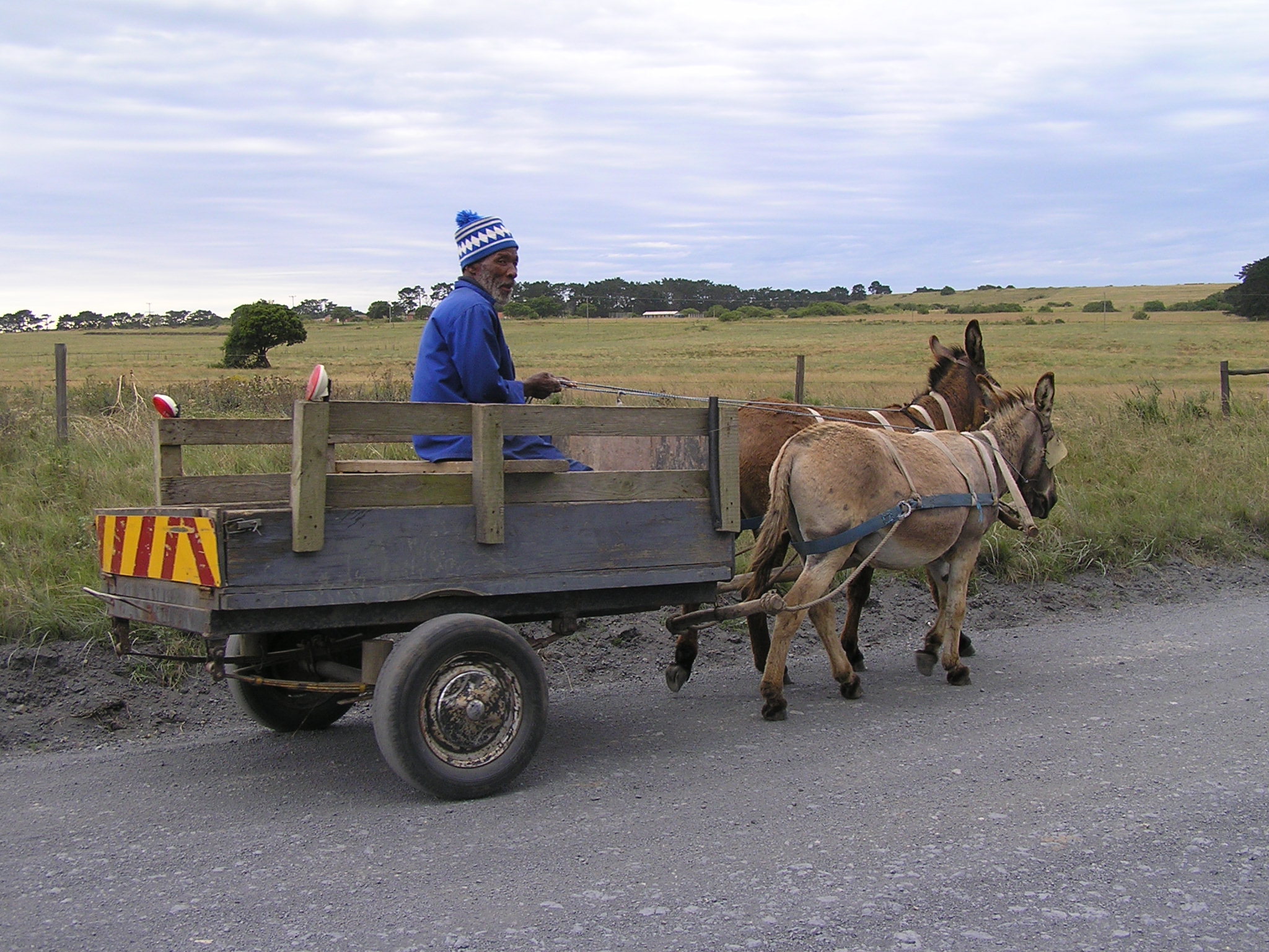 25 August 2013 : Writeup by Paula Wiegmink : After my wonderful experience hunting for ancestors in Alexandria I was very excited to find out that the Intsomni Lodge was owned by relatives! It seems this area is very much steeped in family history. So a visit to the lodge was now definitely on the cards. The next day my friends from Port Alfred took me to Intsomni lodge to meet up with my relatives. Africa is always full of surprises and today was no exception. I was delighted when we passed an elderly man with his donkey cart fully decked with a chevron on the back! I just had to stop and take a photo.