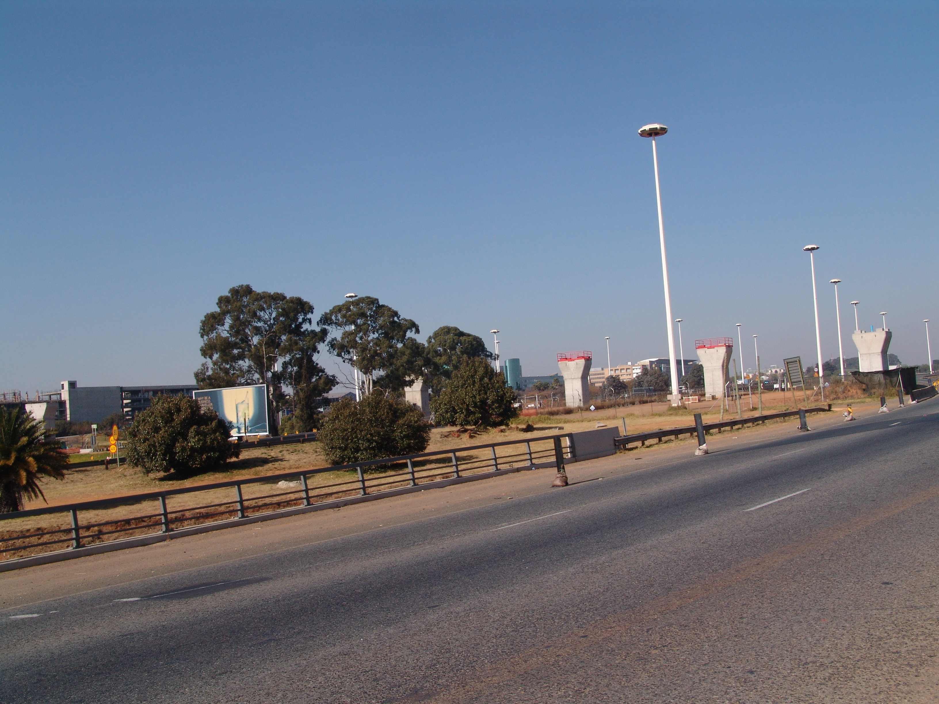 In the following photo you can see the bridge which is being built for the Gautrain over the R21 road.